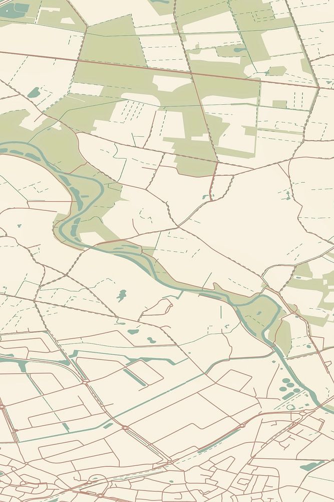 Retro map of Notter, located in Twente, in the municipality of Wierden, province of Overijssel. The map shows public roads, waterways (lakes, streams and ditches) and forests in and around Notter. In addition, the map contains the coordinates of Notter.