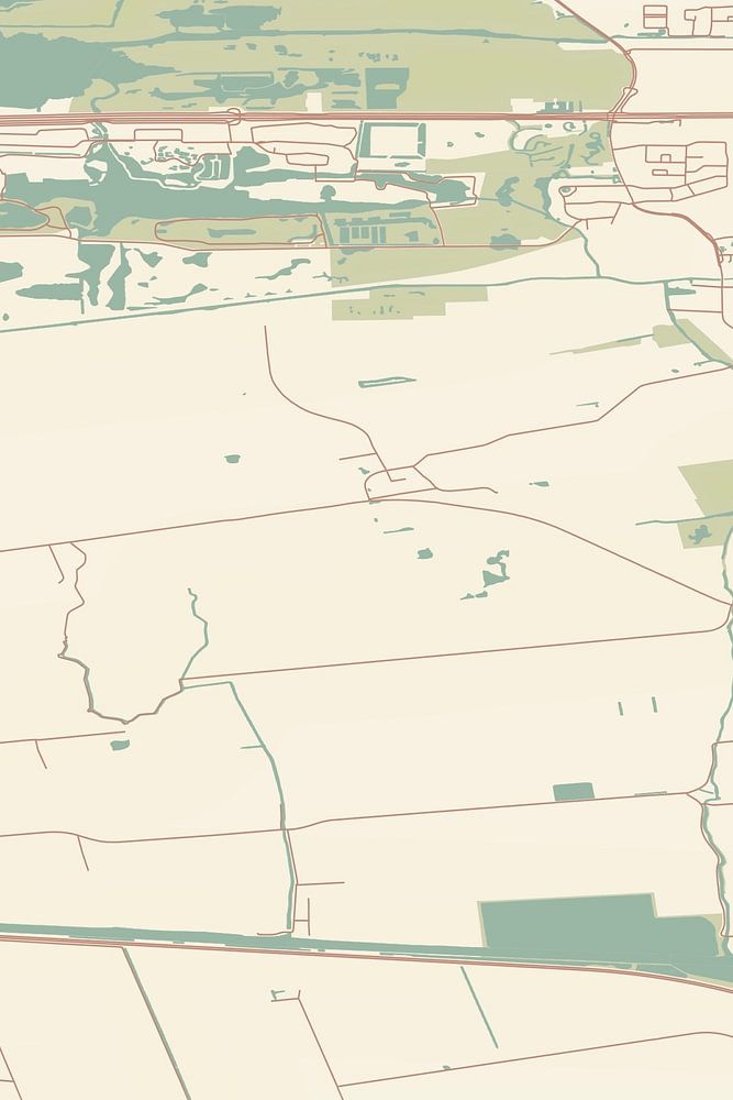 Retro map of Tytsjerk, located in the municipality of Tytsjerksteradiel, province of Fryslan. The map shows public roads, watercourses (lakes, streams and ditches) and forests in and around Tytsjerk. In addition, the map contains the coordinates of Tytsjerk.