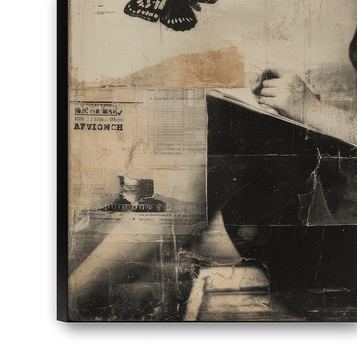 Vintage mixed media collage. A special eye-catcher for your interior! Choose your own size and material with this work and make it completely your own.