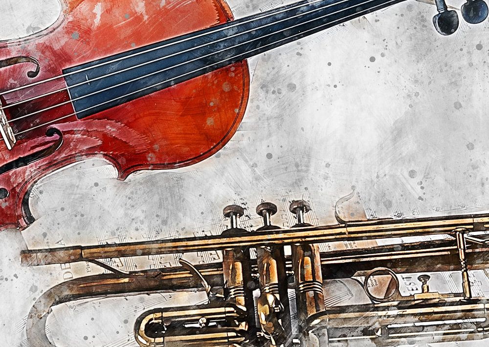 Buy this illustration Violin and Trumpet by Mateo on canvas, ArtFrame, poster and wallpaper, printed on demand in high quality.