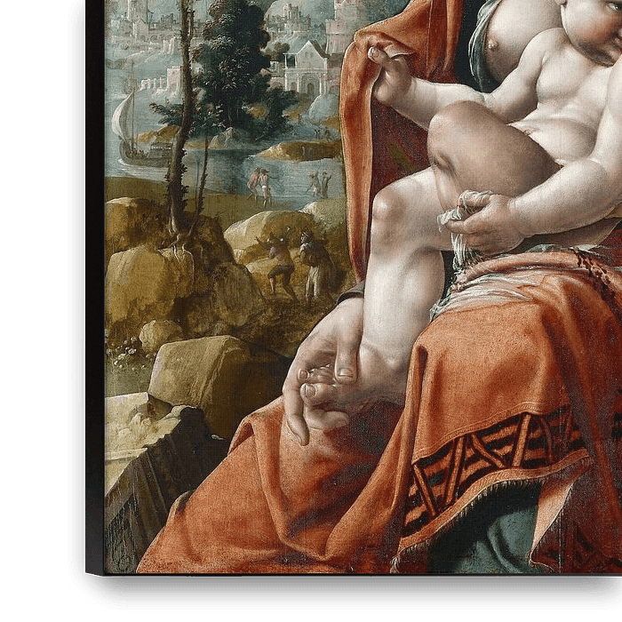 Buy Virgin With Child In Front Of A Landscape, Maarten Van Heemskerck as a reproduction on canvas, ArtFrame, poster and wallpaper, printed on demand in high quality.