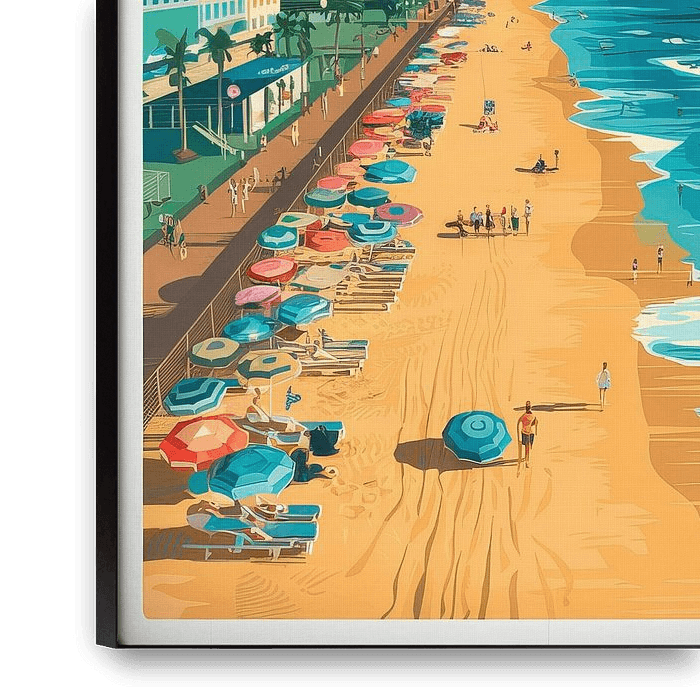 A radiant sunset envelops the Virginia Beach coastline, where vibrant colours and relaxed beach scenes create a summery atmosphere. The gentle waves and people-filled beaches invite you to dream. This artwork adds an inviting, relaxing touch to your living room and brings a holiday feeling to any room.