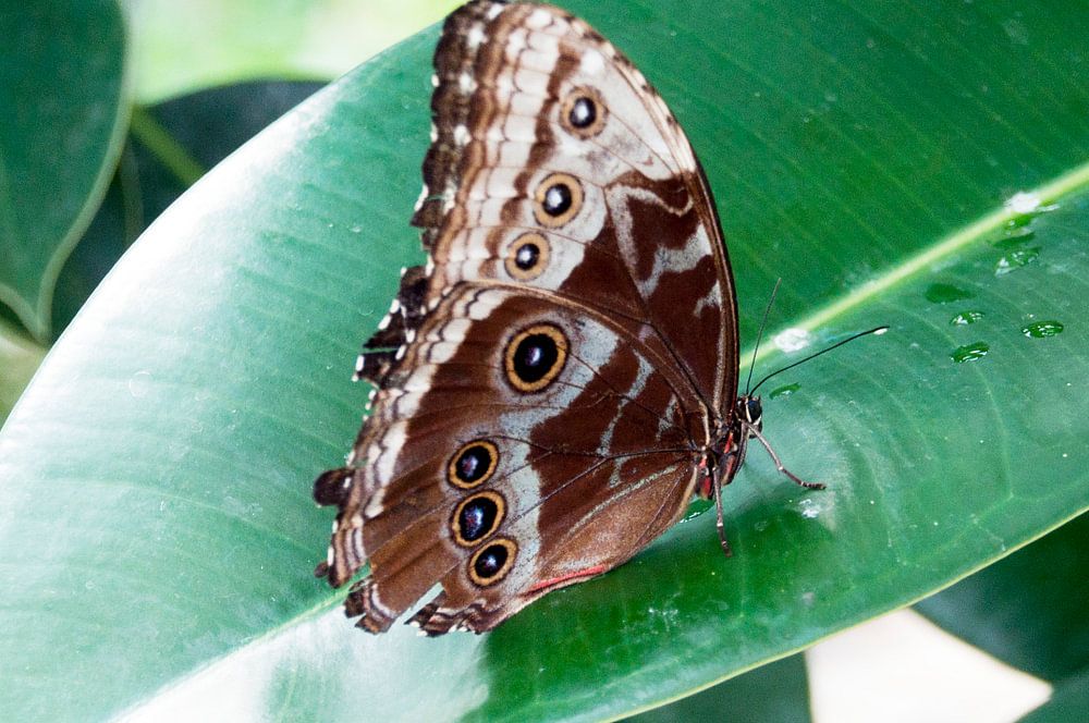 Beautiful butterfly who just seems to rest on a green leaf.