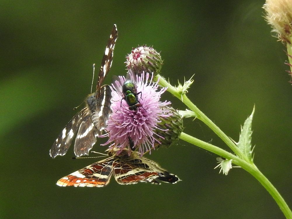 Prachtige vlinders ( landkaartje) op een distel.