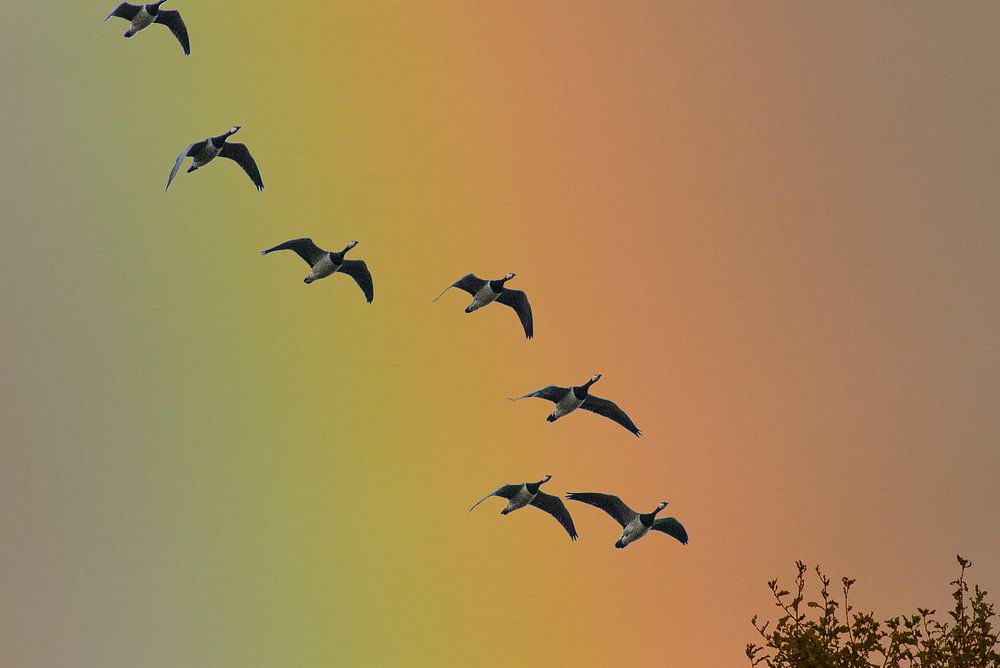 Soms zit alles mee en vliegen de ganzen voor de regenboog in de achtergrond langs.