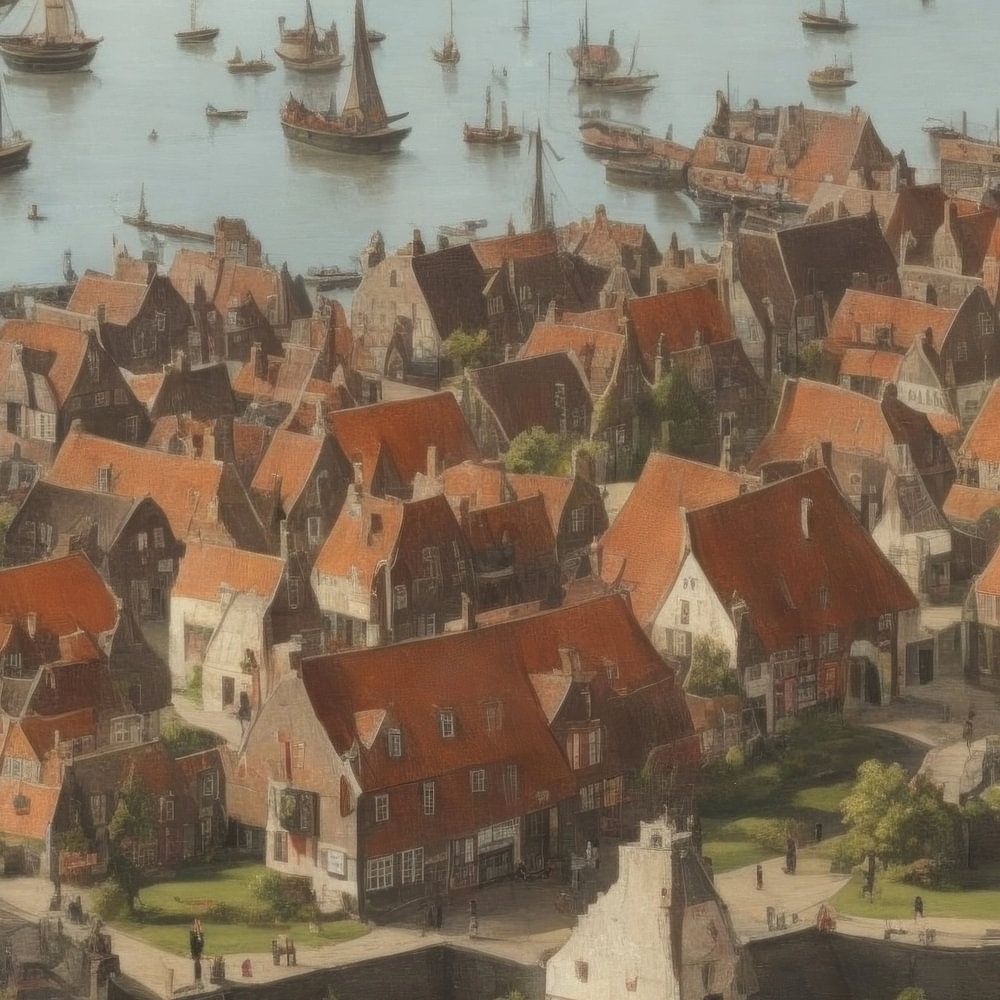 AI gegenereerd beeld van hoe Volendam eruit zou hebben gezien in de 17e eeuw.Uiteraard zal het niet perfect zijn maar wel een leuke terugblik op toen.