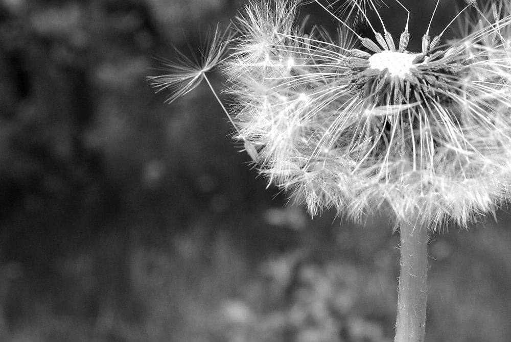 Paardenbloemen zijn zelfs nog steeds mooi als ze volgroeid zijn. Prachtig beeld als de zaadjes net weggeblazen worden door een windvlaag.