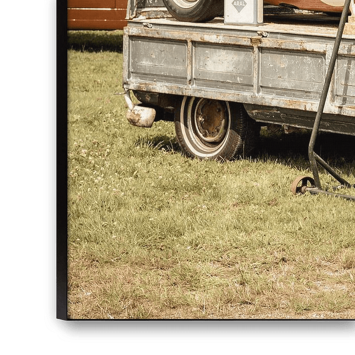 Buy the photo Volkswagen Transporter flatbed with a Porsche race car by Sjoerd van der Wal Photography on canvas, ArtFrame, poster and wallpaper, printed on demand in high quality.