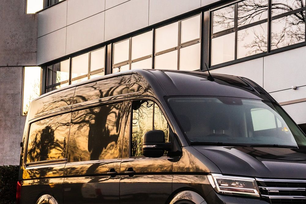 This picture was taken at a modern company building, with beautiful architecture. Probably the most stunning image I have ever taken in which architecture played a leading role. The fresh, modern and angular look of the building result in a perfect backdrop for the e-Crafter. It's almost like the 2 are melting together, what a combo!