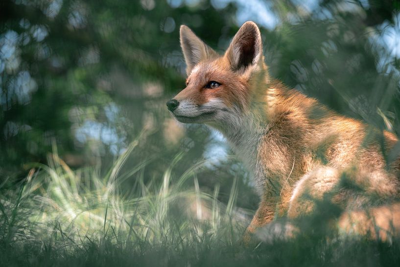 Razor sharp, the head of the fox emerges from the soft foreground and background. This makes it a uniquely beautiful image for your wall. This image is full size, uncropped and great for large prints