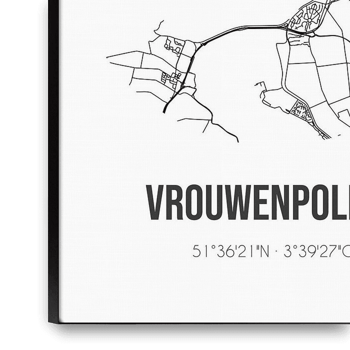 Buy this abstract artwork Vrouwenpolder (Zeeland) | Map | Black and white by Prints of Place on canvas, ArtFrame, poster and wallpaper, printed on demand in high quality.