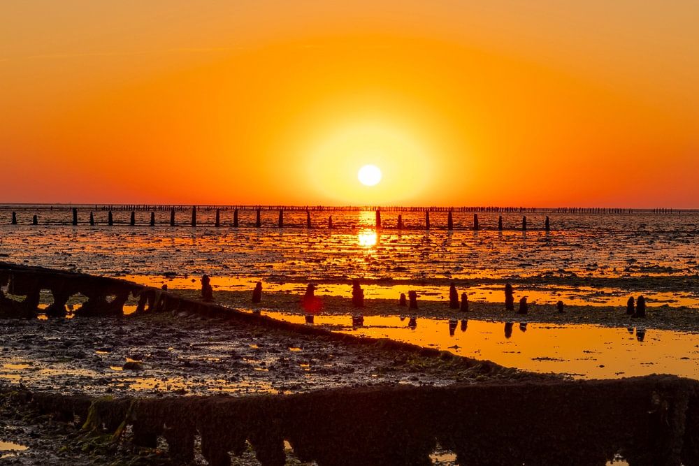 Wadden Sea, sunrise at Paesens Moddergat (Shipwreck of Wierum) by Gert Hilbink