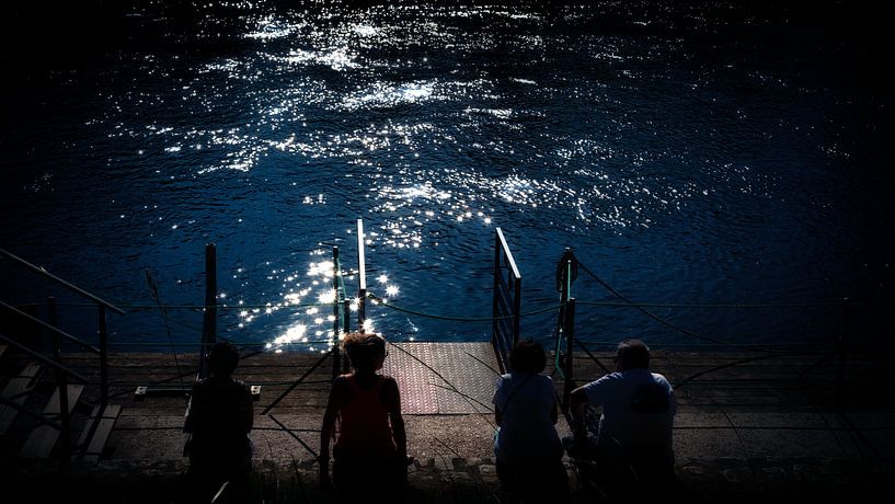 A few tourists are waiting for one of the saloon boats at La Roque-Cageac. They sail their laps on the Dordogne. I darkened the picture a lot to emphasize the reflection of the bright sun in the water. It was very warm and very summery at that time. I wanted to capture that feeling.