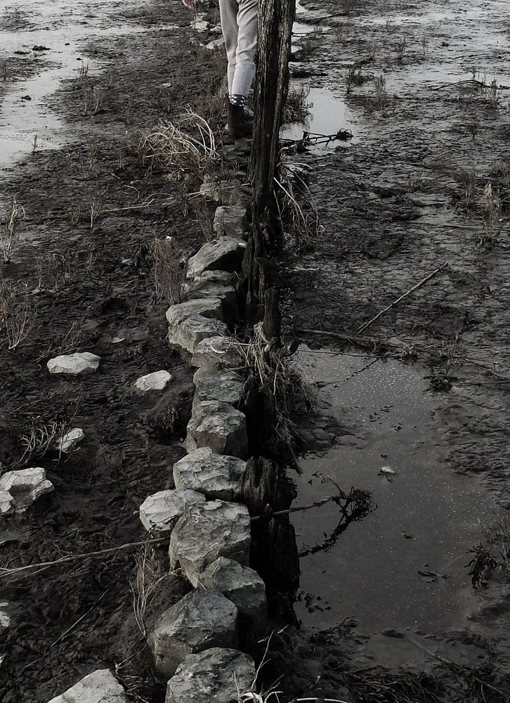 Het meisje loopt op de scheidingslijn tussen twee gemeenten.