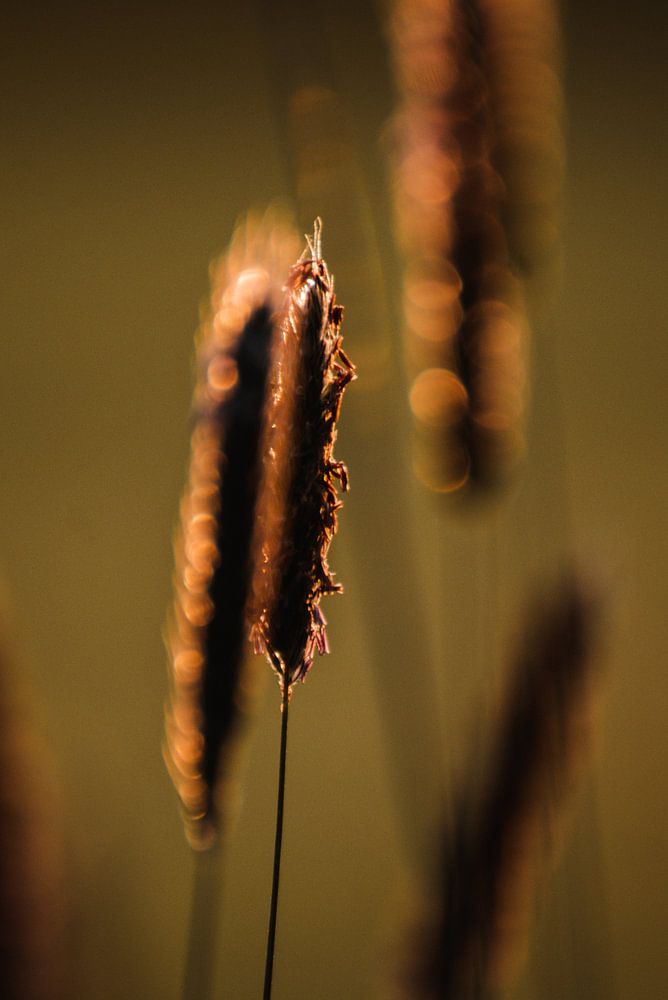 Soft backlight on a blade of grass that is illuminated by the warm sunlight. Photographed on a sultry summer evening at Twickel, Delden.