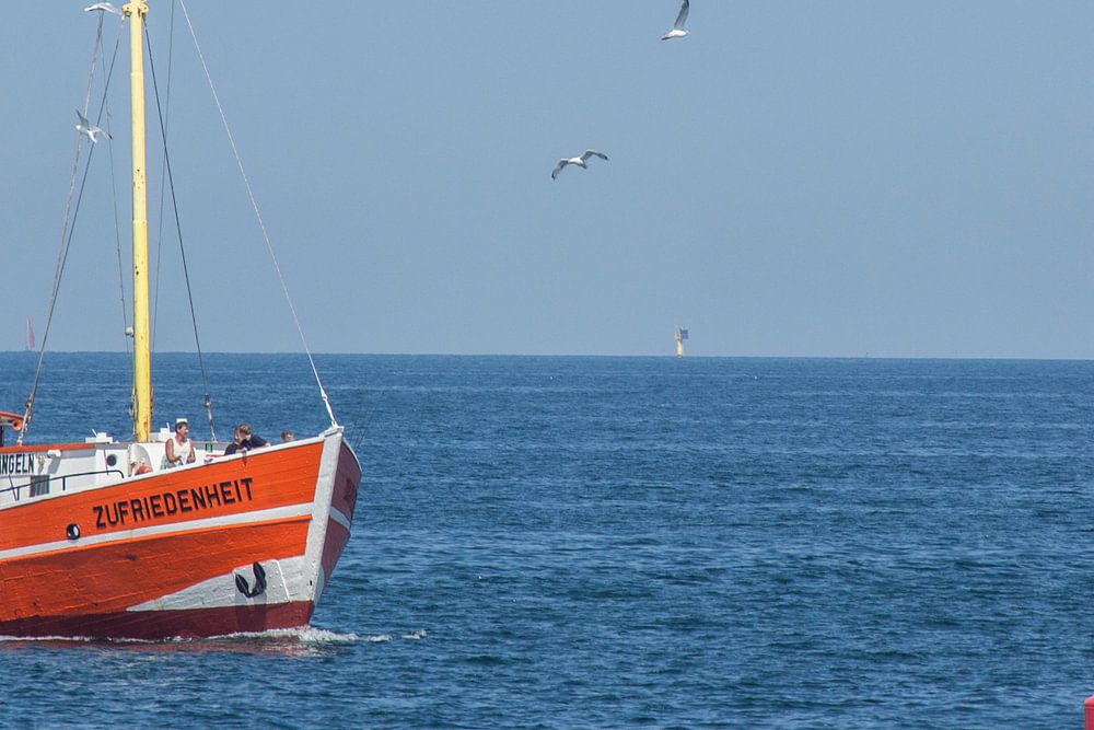 Warnemuende : Fishing cutter in the Baltic Sea with buoy