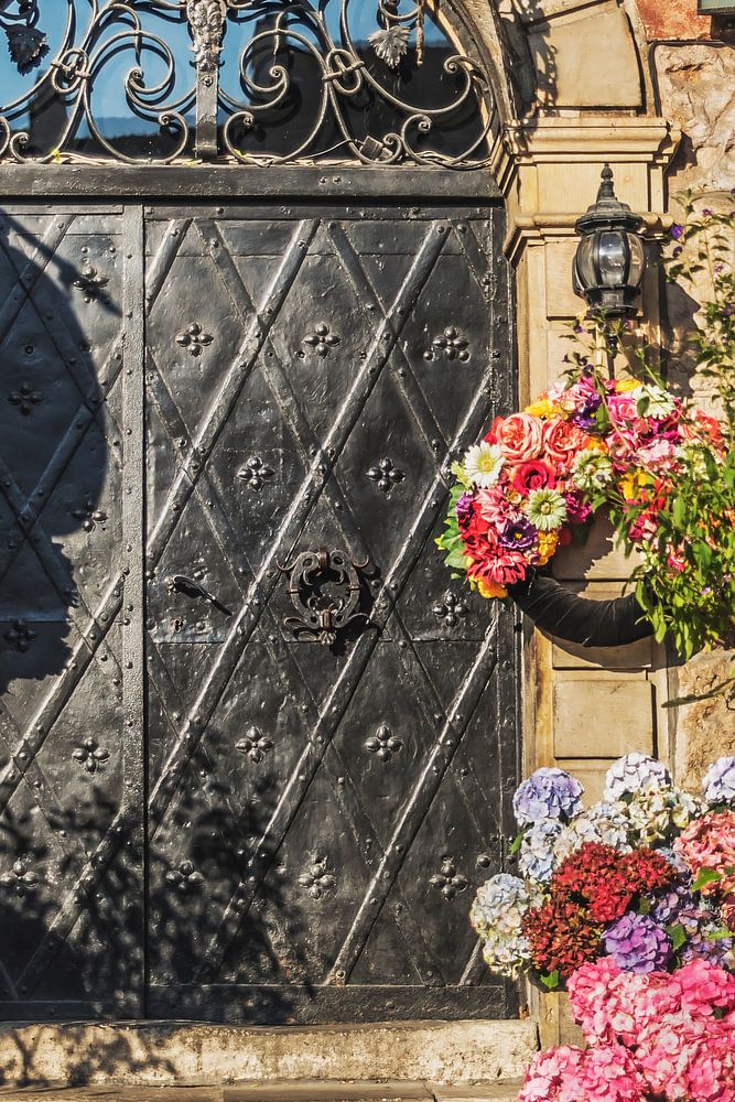 Front door of a house on the old town market square (Rynek Starego Miasta) in the Polish capital Warsaw, Masovian, Poland, Europe