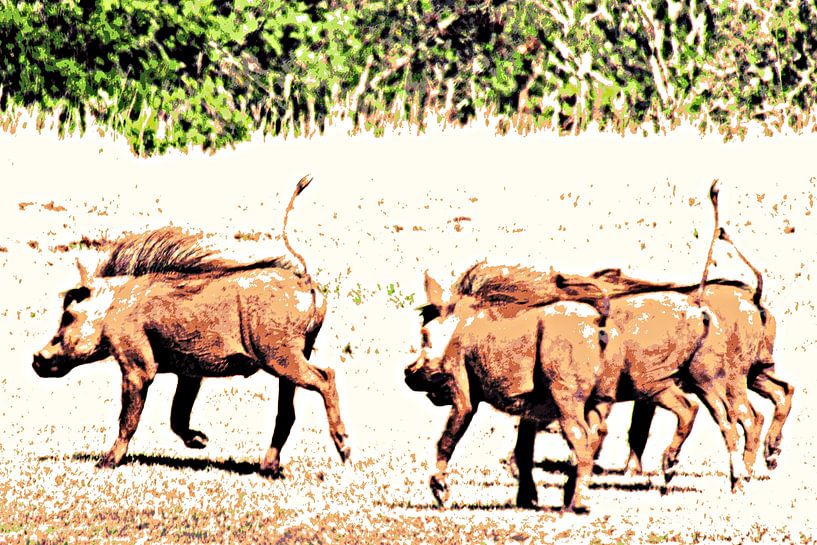 Buy this illustration Warthogs mixed media by Werner Lehmann on canvas, ArtFrame, poster and wallpaper, printed on demand in high quality.