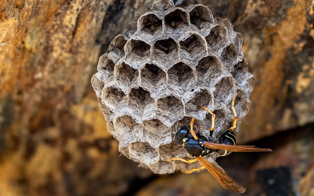 Buy the photo Wasp working on litter by Stijn Cleynhens on canvas, ArtFrame, poster and wallpaper, printed on demand in high quality.