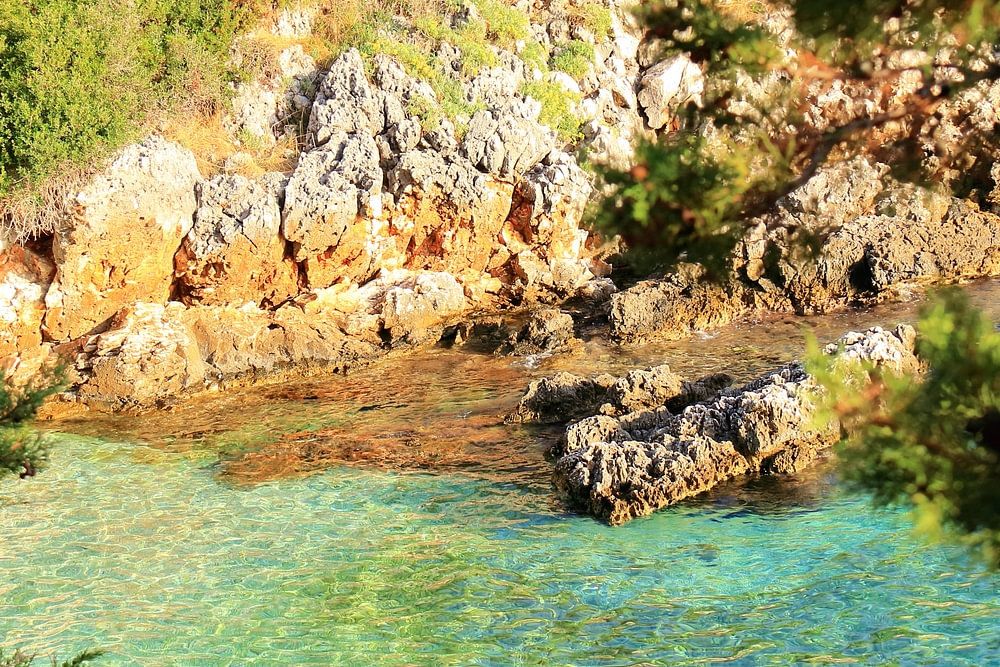 Crystal clear waters at the pebble beach of Lagkadaki of the Greek island of Lefkas in the ionic sea. Hidden gem: Zen, tranquillity. Ultimate holiday feeling.