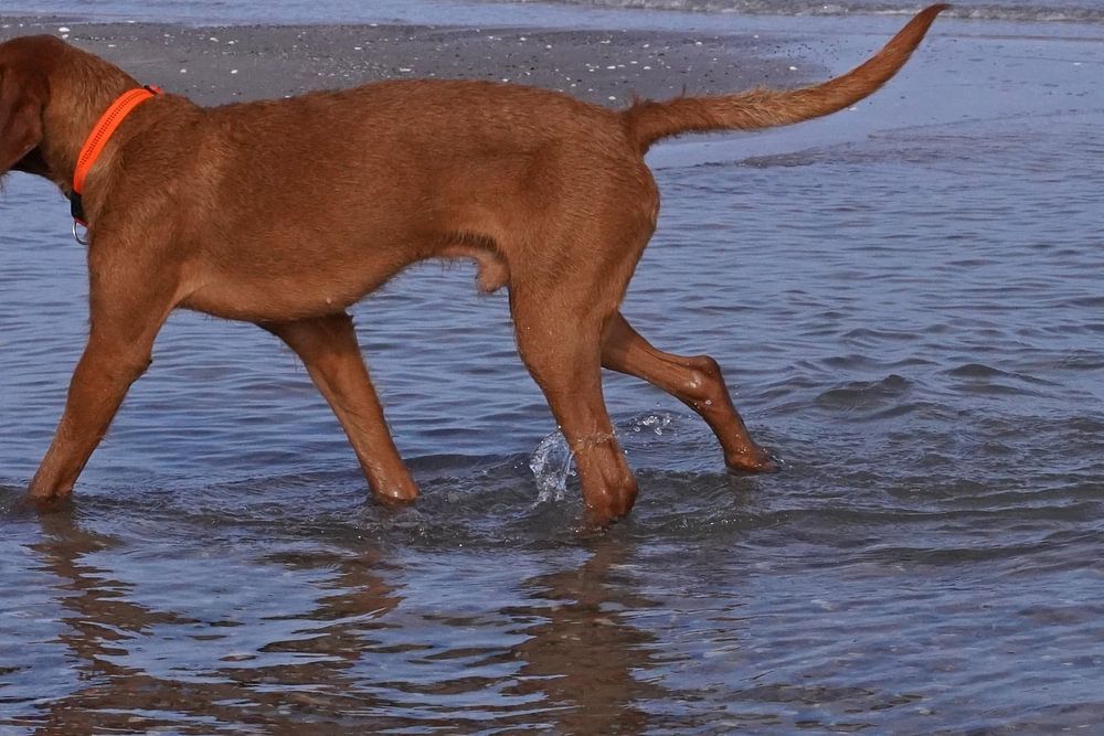 About "Water games at the Baltic Sea with a Magyar Vizsla."