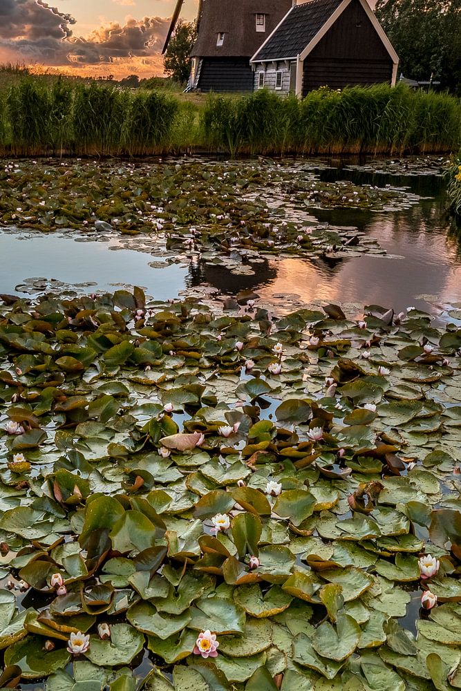 Buy this landscape artwork Water lilies for the mill by peterheinspictures on canvas, ArtFrame, poster and wallpaper, printed on demand in high quality.