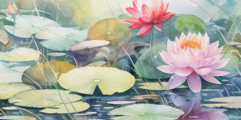 Buy this landscape artwork Water with flowers by Art Bizarre on canvas, ArtFrame, poster and wallpaper, printed on demand in high quality.