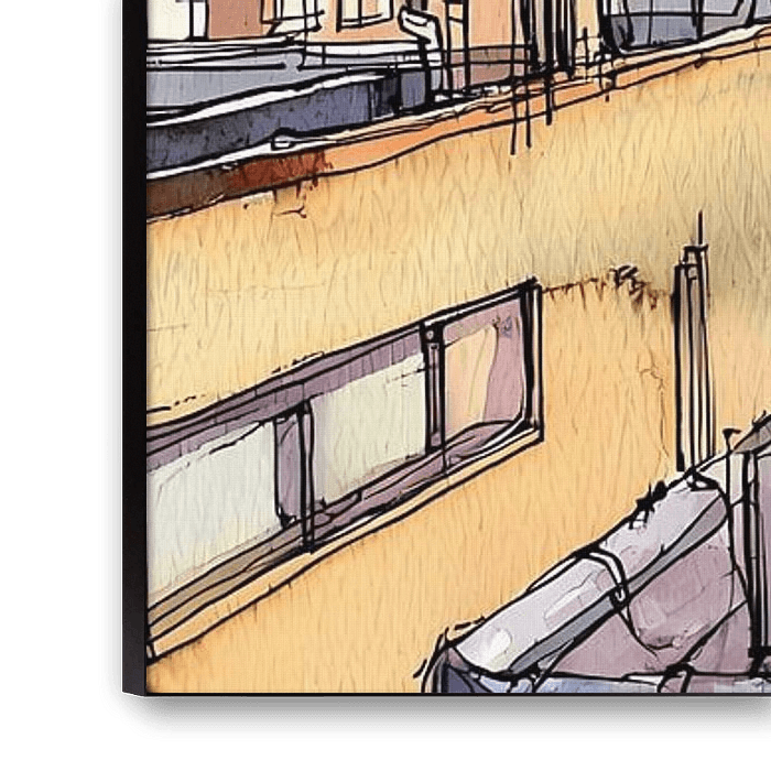 Watercolor panorama from a sketch album, views of the city from the rooftops
