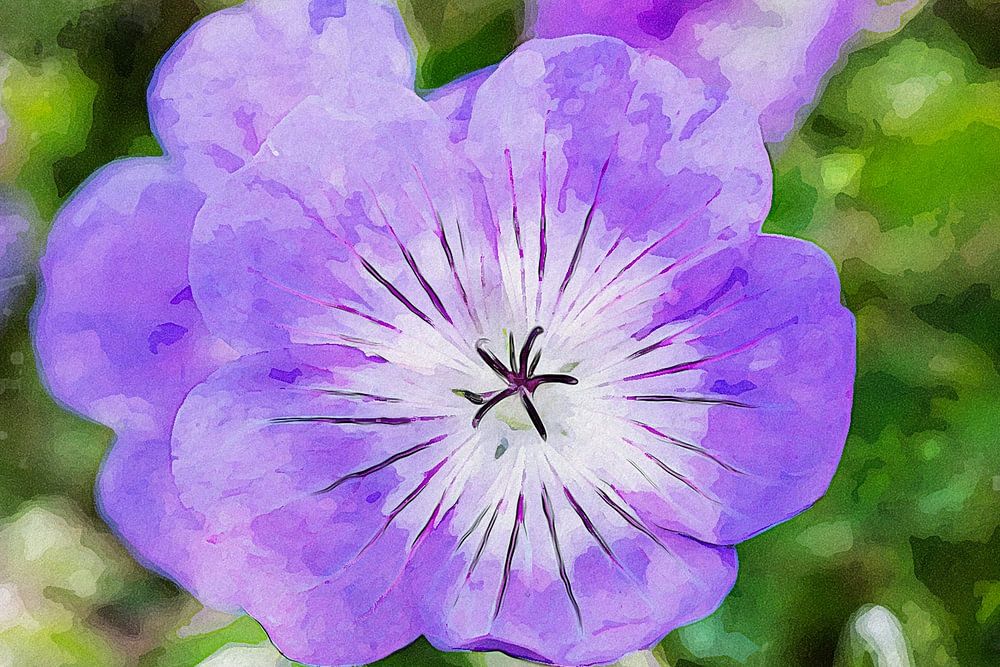 A blue-purple colour in the garden all summer with this perennial geranium. I have edited this photo into a watercolour that fits perfectly in any room of your house. This way, you bring nature and colour into your home even when the garden has finished flowering.