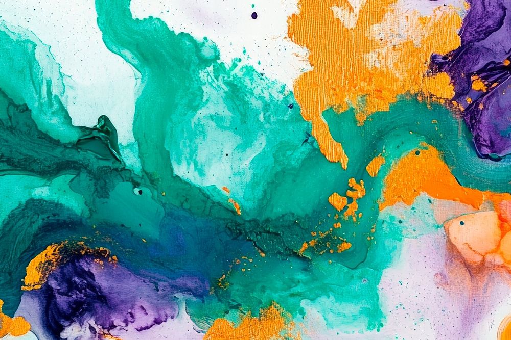 Vibrant bands of colour in bright green, deep purple and warm orange flow harmoniously across the canvas, creating an impression of movement and creativity. This dynamic composition radiates energy and is perfect for a modern living room, where it stimulates conversation and brings the room to life.