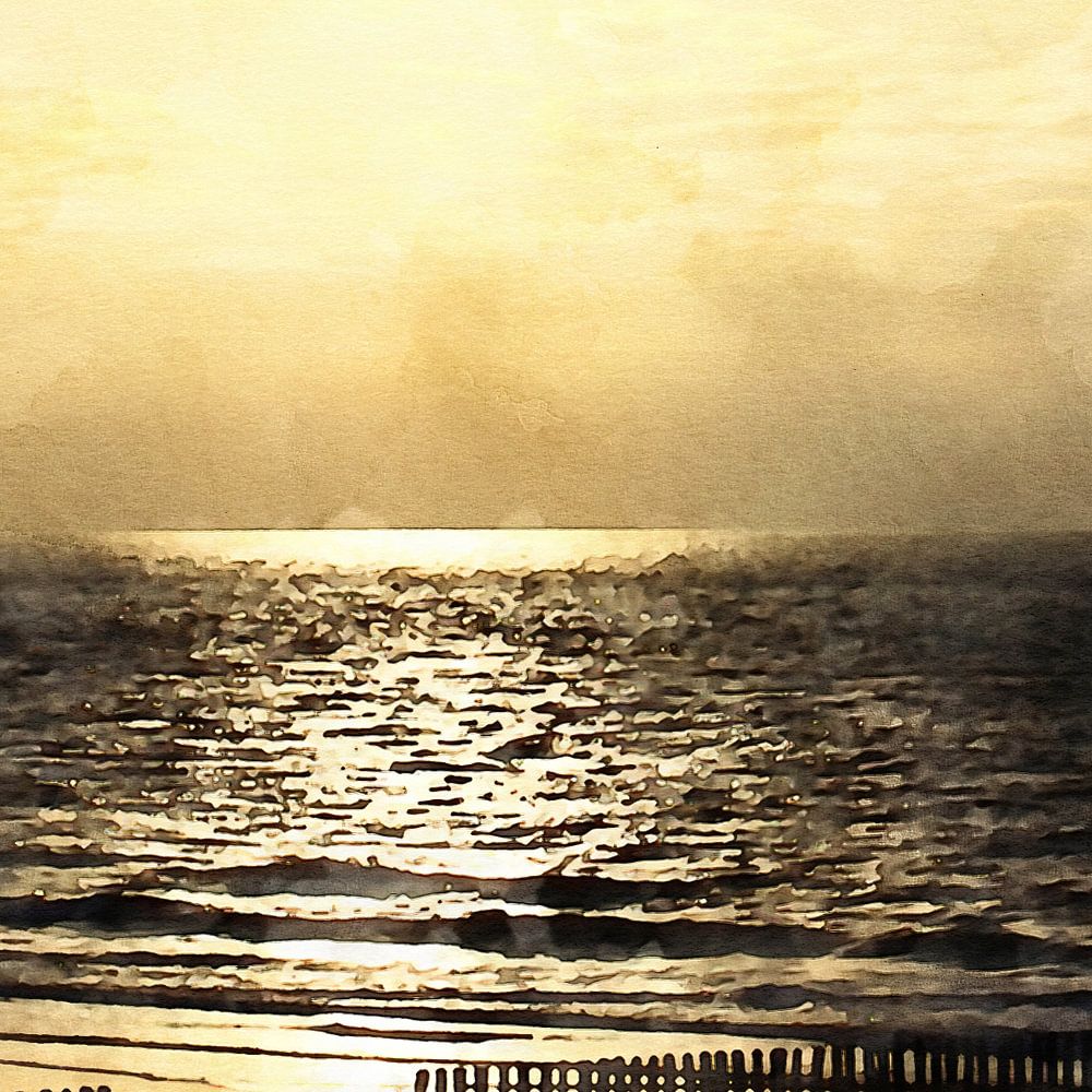 Watercolour image of sunset on the coast of Zeeland by Danny de Klerk