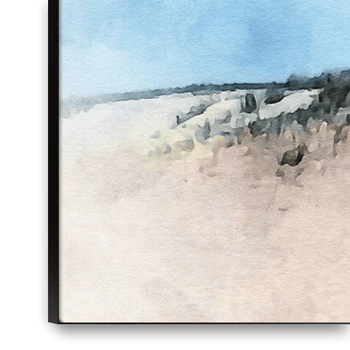 This watercolour image of Breskens beach shows the beach shacks and space of this beach.