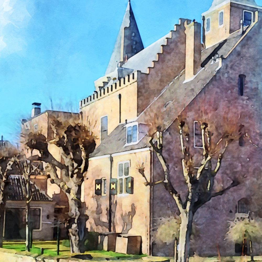 Watercolour painting of Slot Haamstede, Schouwen-Duiveland, Zeeland.