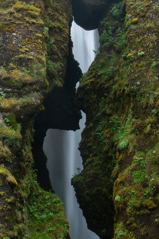 About "Waterfall behind a rock formation at Seljalandsfoss"