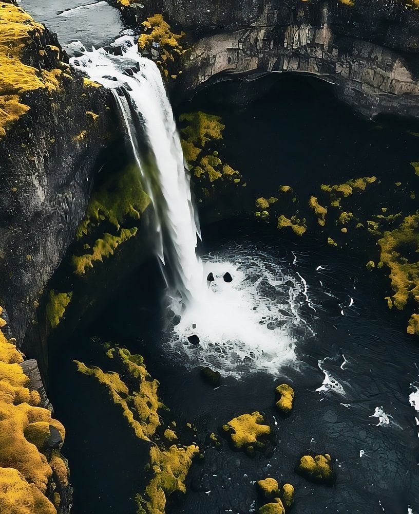 Buy this landscape artwork Waterfall in Iceland by fernlichtsicht on canvas, ArtFrame, poster and wallpaper, printed on demand in high quality.