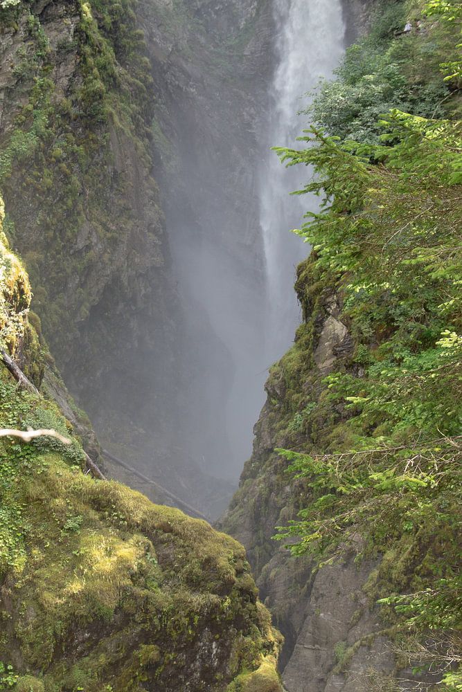 Buy the photo Waterfall in green Austria by Marienke Vos on canvas, ArtFrame, poster and wallpaper, printed on demand in high quality.