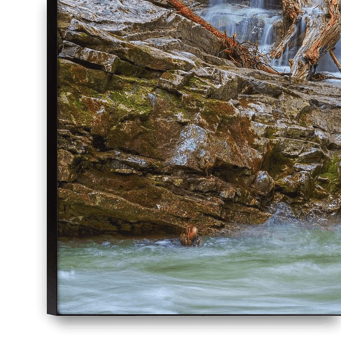 Water stream in Canada at the Johnstone Canyon, beautiful colors in water by stuff brought along by the river.