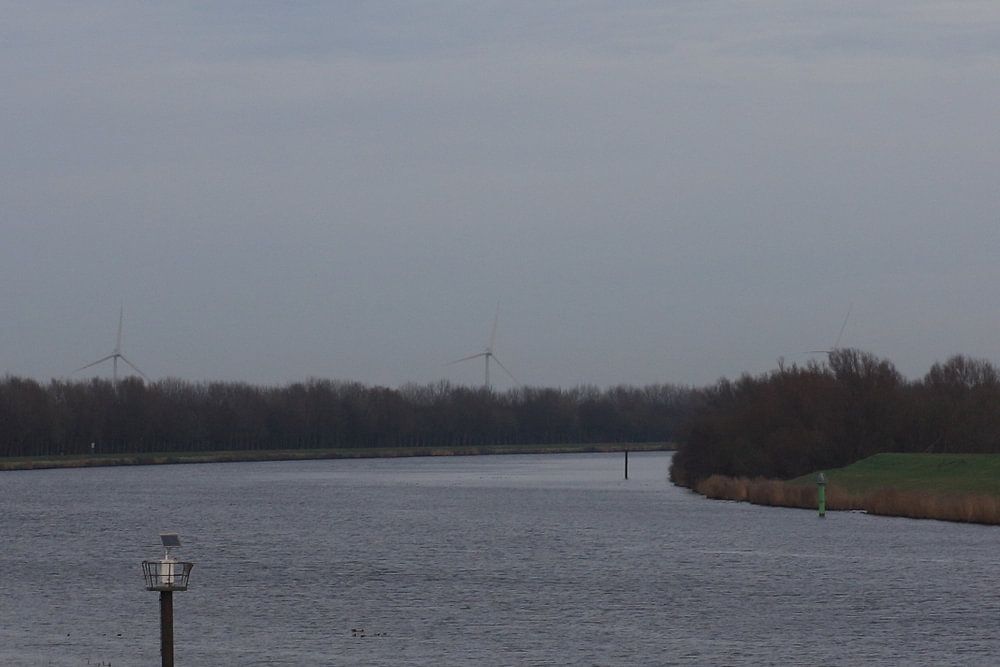 Made on new years day at the Schelde-Rhine canal in Sint Philipsland. Bend in the waterway with windmills in the background.