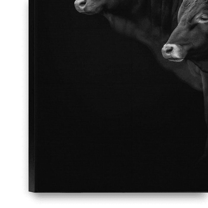 Buy this cow art Watusian cattle with big horns in black and white by By Marjolein Design on canvas, ArtFrame, poster and wallpaper, printed on demand in high quality.