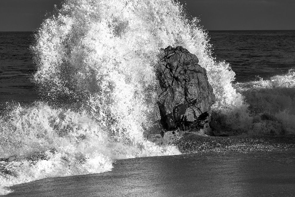 A wave impacting a rock formation on Garrapata State Beach. California, USA.