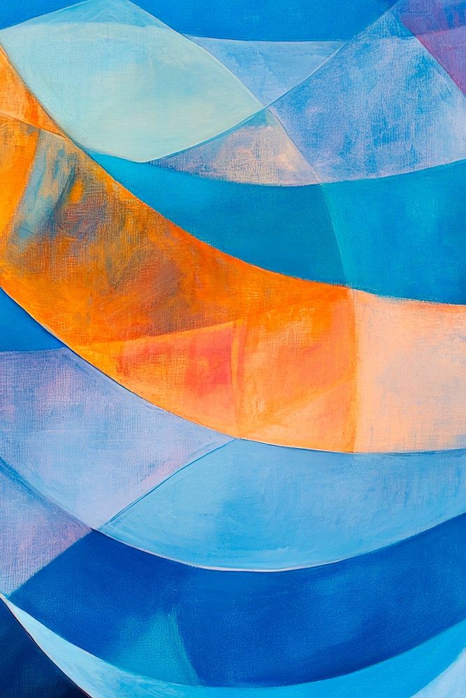 Gentle waves in beige and blue tones dance across the canvas, while orange accents add vibrant energy. This harmonious composition radiates calm and inspiration, perfect for a modern living room or creative office, where it encourages both relaxation and stimulates creative thinking.