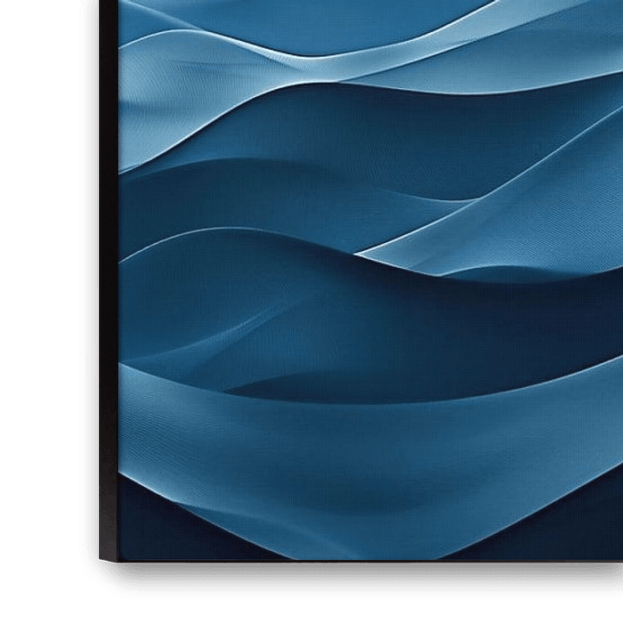 A stylised depiction of waves in different shades of blue. The curved lines create a sense of movement and calm at the same time, while the gentle colour gradient from deep blue to light white creates a balance between depth and lightness. The minimalist design emphasises the flowing shapes and gives the picture an abstract, almost meditative aesthetic.