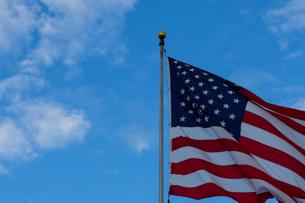 Buy the photo Waving flag of the united states of america with blue sky by adventure-photos on canvas, ArtFrame, poster and wallpaper, printed on demand in high quality.