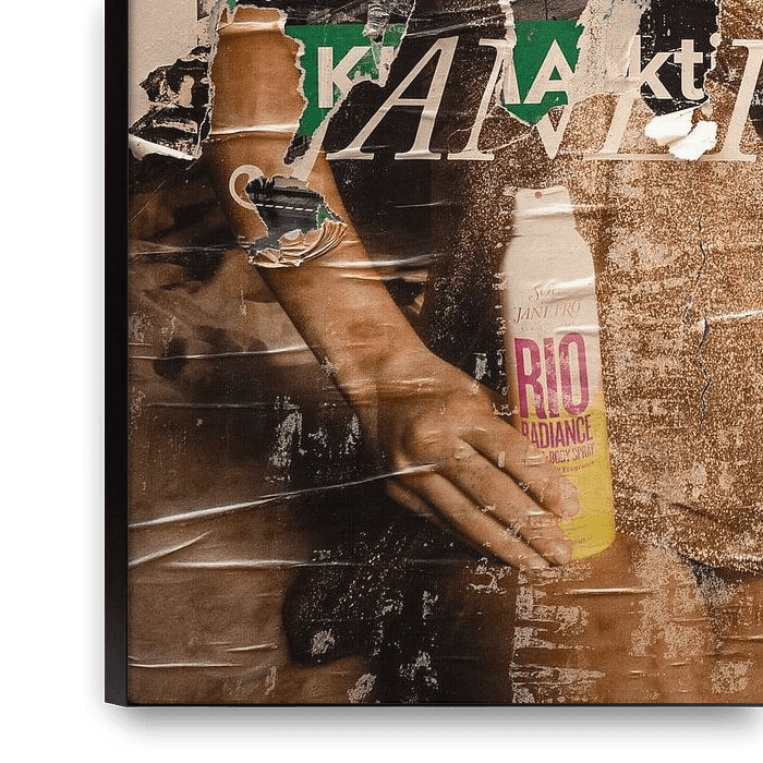 Weathered posters, peeling off like layers.