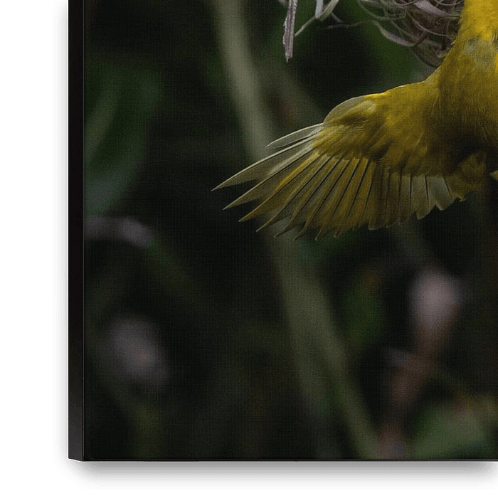 Buy this bird art Weaver bird, Ploceidae, Widah finches building a nest by Fotos by Jan Wehnert on canvas, ArtFrame, poster and wallpaper, printed on demand in high quality.