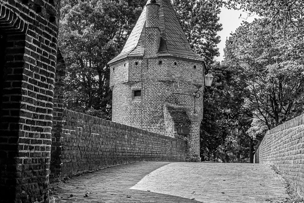 The Monnikendam is an extant watergate in the Dutch city of Amersfoort. Under this water gate, the water of the Heiligenbergerbeek flows into the city centre. The gate consists of two towers, connected by a gate arch, and stands on the east side of the city centre.
