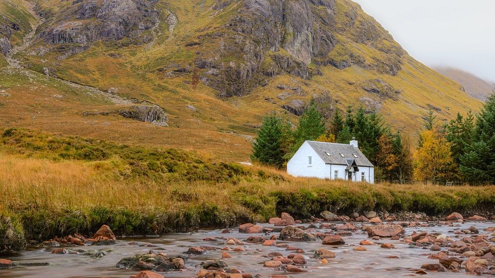In the rugged landscape of Glencoe stands the famous Wee White House, a small white cottage that seems almost lost in the vast valley. Surrounded by mountains, grasslands and changing light, it contrasts sharply with the grandeur of Scottish nature. It is precisely this simplicity that makes this place so special.