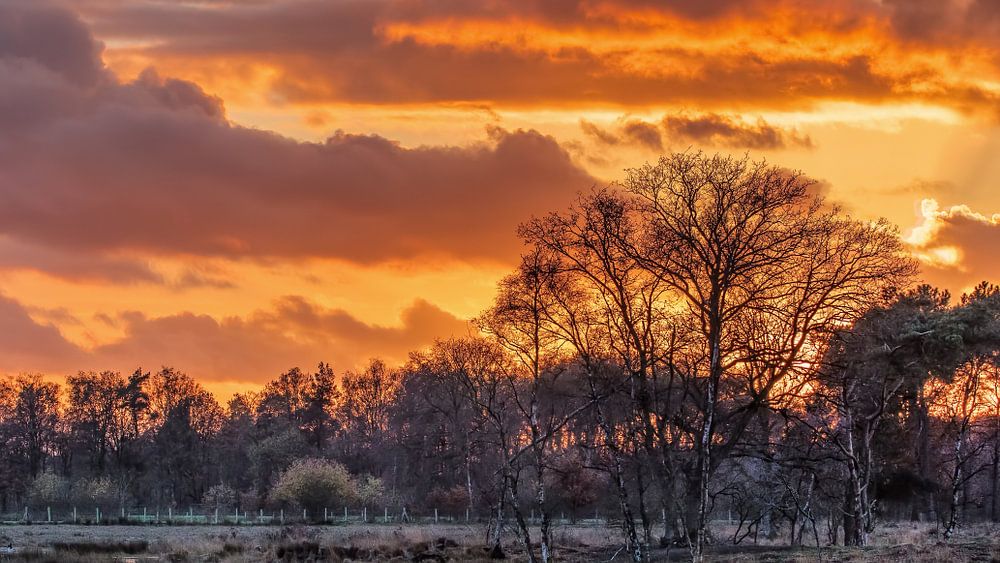 Wetland against orange cloudy sky during sunset by Tony Vingerhoets