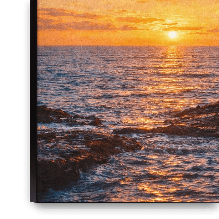 A warm sunset over the ocean paired with a bold motivational quote creates an optimistic and energizing atmosphere. This typography wall art blends golden light with a powerful message of possibility.