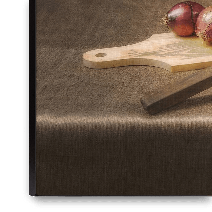 Something very different in photography is still life. A composition made with a red cabbage, onions and a tin cup.